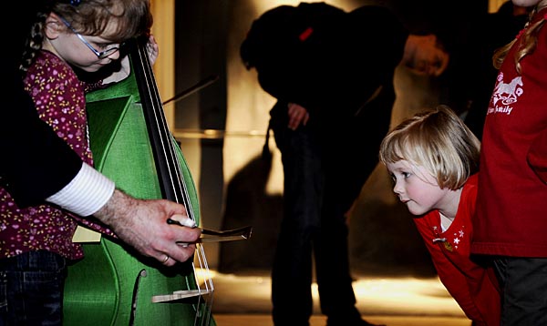6日,在德國(guó)柏林音樂廳,樂手指導(dǎo)兒童演奏大提琴。當(dāng)日,柏林音樂廳舉行公眾開放日活動(dòng),免費(fèi)為市民演出,兒童還可以在樂手的指導(dǎo)下體驗(yàn)各種樂器,培養(yǎng)他們對(duì)音樂的喜愛。
