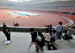 4月16日,多家媒體在國家體育場內(nèi)采訪拍攝。當(dāng)日,國家體育場(“鳥巢”)開始對(duì)注冊(cè)媒體開放。4月18日至19日,“好運(yùn)北京”國際田聯(lián)競走挑戰(zhàn)賽將在國家體育場舉行,這是國家體育場的第一場正式賽事。