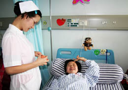 10歲的鄧林玉是四川北川縣曲山小學(xué)四年級(jí)的學(xué)生,在汶川大地震中左坐骨骨折。日前,小玉和其他143名傷員一起被送到南寧,在廣西壯族自治區(qū)人民醫(yī)院接受治療。