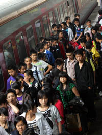 25日,中石化北京分公司從地震重災(zāi)區(qū)都江堰市招收的95名新員工抵達(dá)北京西站。