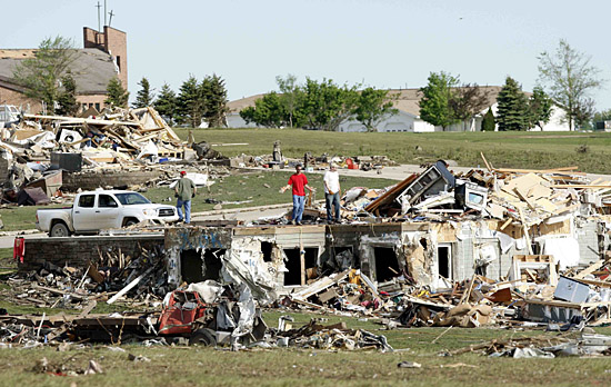 26日,在美國(guó)艾奧瓦州的帕克斯堡,幾名志愿者站在被龍卷風(fēng)摧毀的房屋的廢墟中。美國(guó)國(guó)家氣象局25日說(shuō),美國(guó)中北部的明尼蘇達(dá)州和艾奧瓦州部分地區(qū)當(dāng)日遭疑似龍卷風(fēng)的強(qiáng)風(fēng)暴襲擊。風(fēng)暴在明尼蘇達(dá)州雨果市造成數(shù)十棟房屋被毀,一名2歲嬰兒遇難,至少20人下落不明。在艾奧瓦州則造成至少7人死亡,另有50多人受傷。新華社/路透