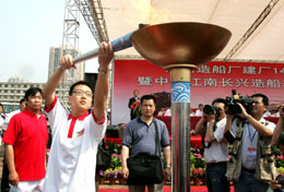 6月3日,一名船廠職工正在點(diǎn)燃象征中國造船工業(yè)薪火相傳的火炬。當(dāng)日,我國規(guī)模最大的造船基地中船江南長興造船基地一期工程竣工,標(biāo)志著擁有143年歷史的江南造船廠勝利完成整體搬遷至上海長興島。中國船舶工業(yè)集團(tuán)公司旗下的江南造船(集團(tuán))公司,由江南造船廠改制而來,其前身是創(chuàng)辦于1865年的江南機(jī)器制造總局,被公認(rèn)是中國民族工業(yè)的發(fā)源地,有“中國第一廠”之譽(yù)。