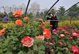6月5日,一名記者在北京市園林科學(xué)研究所花圃拍攝月季花。當(dāng)日,來(lái)自10多個(gè)國(guó)家的百余位中外記者在北京市園林科學(xué)研究所和順義區(qū)北郎中花木中心提前領(lǐng)略了奧運(yùn)花卉風(fēng)采。奧運(yùn)花卉將在奧運(yùn)期間成為扮靚天安門廣場(chǎng)、機(jī)場(chǎng)路、奧林匹克中心區(qū)等重點(diǎn)區(qū)域的主角,這些重點(diǎn)區(qū)域的用花量預(yù)計(jì)將在4000萬(wàn)盆株以上。 |