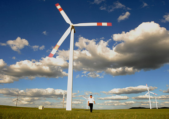| 一位游客走過(guò)錫林郭勒輝騰梁風(fēng)電場(chǎng)(6月23日攝)。近年來(lái),風(fēng)能豐富的內(nèi)蒙古錫林郭勒盟加快風(fēng)電項(xiàng)目建設(shè),將這里的風(fēng)能作為一種“綠色”可再生資源,科學(xué)規(guī)劃產(chǎn)業(yè)布局,積極打造百萬(wàn)千瓦風(fēng)電基地。目前,錫林郭勒全盟已開(kāi)工風(fēng)電項(xiàng)目15項(xiàng),裝機(jī)容量達(dá)120萬(wàn)千瓦。 | |