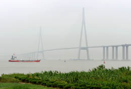 6月30日,我國自主設(shè)計建設(shè)的世界最大跨徑斜拉橋——蘇通大橋正式通車。蘇通大橋連接江蘇南通與蘇州兩市,路線全長32.4公里,由主跨1088米的跨江大橋和南、北岸接線三部分組成。該橋創(chuàng)造了最大主跨、最深基礎(chǔ)、最高塔橋、最長拉索四項斜拉橋世界紀(jì)錄。