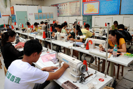 7月1日,在四川省彭州市一所職業(yè)技能培訓(xùn)學(xué)校,來(lái)自彭州災(zāi)區(qū)的學(xué)員們?cè)趯W(xué)習(xí)電動(dòng)縫紉。為解決災(zāi)區(qū)群眾的就業(yè)問(wèn)題,彭州市就業(yè)局與當(dāng)?shù)嘏嘤?xùn)學(xué)校聯(lián)合開(kāi)辦免費(fèi)電動(dòng)縫紉技術(shù)培訓(xùn)班,并對(duì)學(xué)習(xí)期滿后合格的學(xué)員進(jìn)行就業(yè)安置。