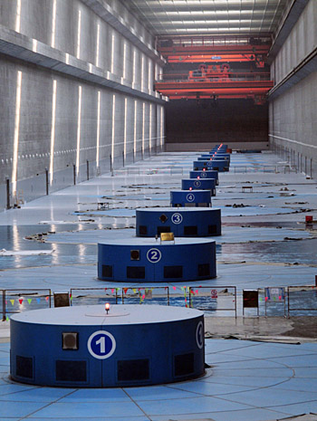 7月12日,三峽左岸電站的發(fā)電機(jī)組正在運(yùn)行。從7月4日至11日,長(zhǎng)江上游的強(qiáng)降雨致使三峽入庫(kù)流量快速增長(zhǎng),三峽和葛洲壩梯級(jí)電站日發(fā)電量連續(xù)8天超過(guò)4億千瓦時(shí),創(chuàng)歷史新高。