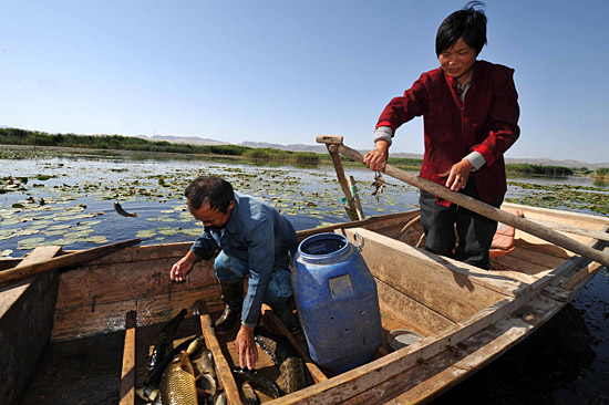目前,新疆最大的漁業(yè)生產(chǎn)基地博斯騰湖正處于捕撈旺季。為保持當(dāng)?shù)貪O業(yè)可持續(xù)增長(zhǎng),博湖縣近年來加大魚種增殖放流力度和水域生態(tài)改善,2008年計(jì)劃投放大規(guī)格魚種200噸。