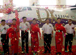 7月31日,西飛公司和奧凱航空有限公司高層為飛機(jī)交付剪彩。 當(dāng)日,中國一航西安飛機(jī)工業(yè)(集團(tuán))有限責(zé)任公司(簡稱西飛公司),向奧凱航空有限公司交付了首架新舟60飛機(jī)。這標(biāo)志著國產(chǎn)支線飛機(jī)開始進(jìn)入國內(nèi)民用航空運(yùn)輸領(lǐng)域。 |