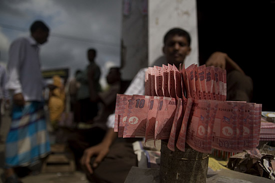 6日,在孟加拉國首都達卡,一名換鈔小販招攬生意。由于7月的入境匯款達到創(chuàng)紀錄的8.3億美元,孟加拉國的外匯儲備增加到近60億美元。