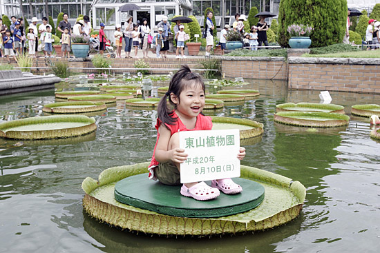 10日,在日本名古屋的東山植物園,一名小女孩坐在一片直徑長(zhǎng)達(dá)一米的克魯茲王蓮的葉子上。東山植物園每年都會(huì)舉辦一次“蓮中坐”的活動(dòng),為游客們提供不同尋常的游園體驗(yàn)。新華社/法新