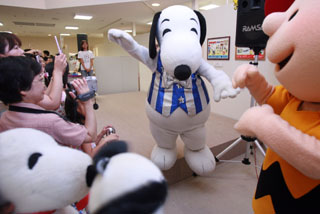 11日,在日本東京銀座三越百貨店,“史努比”為觀眾表演舞蹈。一年一度的“史努比在銀座”特展近日如期在這里開幕,“史努比”和它的好伙伴們輪番登臺(tái)表演,吸引了眾多“粉絲”。