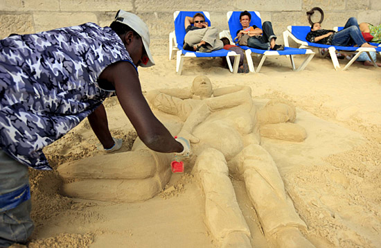 | 17日,一名街頭藝術(shù)家在法國(guó)首都巴黎塞納河畔的沙灘上做沙雕。已連續(xù)舉辦7年的“巴黎沙灘”于盛夏時(shí)節(jié)在巴黎市政廳廣場(chǎng)和塞納河畔設(shè)置沙場(chǎng)和休閑娛樂(lè)設(shè)施,供游人免費(fèi)享用,受到當(dāng)?shù)厝撕陀慰蜌g迎。法國(guó)今夏長(zhǎng)假期間,更多的法國(guó)人選擇就近度假,而不是駕車旅游或外出度假。隨著能源和糧食價(jià)格的上漲,法國(guó)居民的實(shí)際購(gòu)買力不斷下降,購(gòu)買力下降是導(dǎo)致法國(guó)人減少外出度假的主要原因之一。 | |