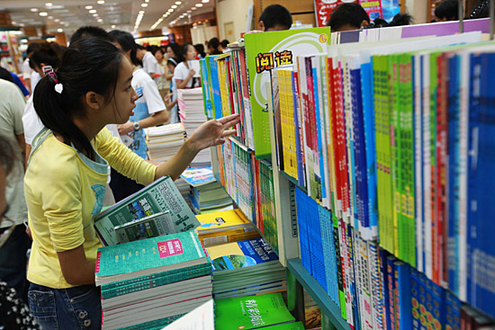 8月31日,一位初中生正在書店內(nèi)選購(gòu)英語輔導(dǎo)書。