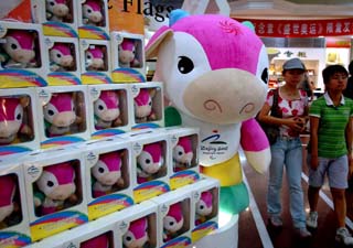 隨著北京殘奧會(huì)的日益臨近,殘奧會(huì)各種特許商品的銷售也開始進(jìn)入“旺季”。這是在北京市一家殘奧會(huì)特許商品經(jīng)銷店內(nèi)擺出的殘奧會(huì)吉祥物——“福牛樂樂”。
