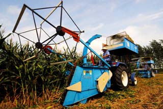 山東鼓勵發(fā)展青貯玉米種植。8月29日,大型機械在山東臺兒莊區(qū)吳莊村田地里收割青貯玉米。新華社發(fā)(高啟民