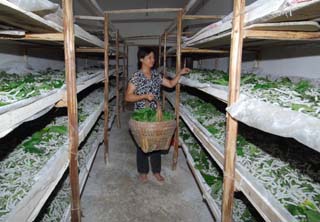 江西萬年大力發(fā)展蠶桑產(chǎn)業(yè)。目前全縣桑園面積已發(fā)展到9000畝,養(yǎng)蠶農(nóng)戶達(dá)7000多戶,并全部實現(xiàn)手持訂單生產(chǎn)。8月30日,上坊鄉(xiāng)港邊村技術(shù)工人郝國珍在喂養(yǎng)桑蠶。新華社發(fā)(周科