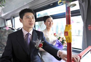 “無車日”公交車作婚車