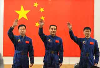 當日,神舟七號載人航天飛行任務總指揮部決定,神舟七號飛船將于9月25日21時07分至22時27分擇機發(fā)射,進行載人航天飛行。執(zhí)行神七飛行任務的航天員是翟志剛(中)、劉伯明(右)、景海鵬。