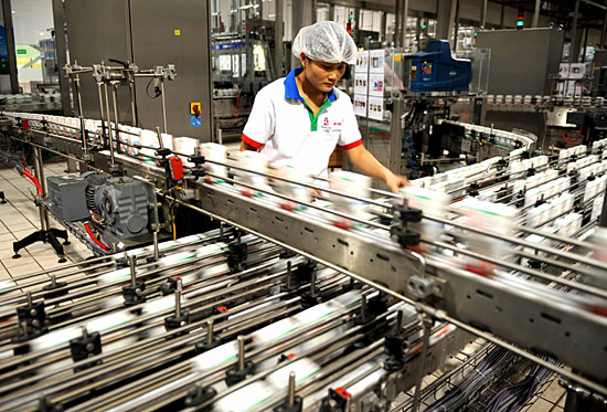 9月25日,伊利金川液態(tài)奶生產(chǎn)線正在生產(chǎn)。自“問題奶”事件以來,內(nèi)蒙古在堅決打擊非法收售原奶、派質(zhì)檢人員駐企業(yè)監(jiān)督生產(chǎn)的同時,又于9月24日決定從主席預(yù)備金中拿出1億元資金,重點支持伊利、蒙牛兩家企業(yè)生產(chǎn)。