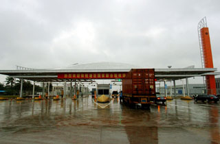 這是海南洋浦保稅港區(qū)卡口(10月13日攝)。 10月13日,海南洋浦保稅港區(qū)(一期)通過(guò)了由海關(guān)總署、發(fā)改委、財(cái)政部、國(guó)土資源部、交通運(yùn)輸部、商務(wù)部、稅務(wù)總局、工商總局、質(zhì)檢總局、外匯局等10個(gè)部委組成的聯(lián)合驗(yàn)收小組的驗(yàn)收,這標(biāo)志著洋浦保稅港區(qū)具備了正式封關(guān)運(yùn)作的條件,即將成為我國(guó)第四個(gè)投入運(yùn)作的保稅港區(qū)。 |