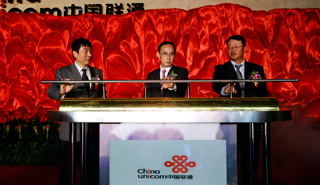10月15日,工業(yè)和信息化部副部長奚國華(左)、中國聯(lián)合網(wǎng)絡(luò)通信有限公司籌備組組長常小兵(中)和國務(wù)院國有資產(chǎn)監(jiān)督管理委員會副主任孟建民在揭幕儀式上。 當(dāng)日,中國網(wǎng)通紅籌公司、中國聯(lián)通紅籌公司成功合并,中國聯(lián)合網(wǎng)絡(luò)通信有限公司宣告成立。我國電信重組改革在資本市場層面的工作結(jié)束。 |