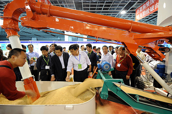 10月16日,參觀者在糧油機(jī)械展區(qū)觀看一臺多功能吸糧機(jī)的功能演示。 當(dāng)日,第8屆中國國際糧油產(chǎn)品及設(shè)備技術(shù)展覽會在南京國際展覽中心開幕。此次展會設(shè)糧油機(jī)械展區(qū)、糧食檢化驗(yàn)儀器展區(qū)、國內(nèi)各省展團(tuán)區(qū)、馬來西亞棕櫚油展區(qū)、油脂展區(qū)、糧食文化展區(qū)6大展區(qū),展覽總面積近2萬平方米,500多家中外企業(yè)參展,國內(nèi)25個省區(qū)市糧食局組團(tuán)展示當(dāng)?shù)丶Z油產(chǎn)品、糧機(jī)設(shè)備及企業(yè)風(fēng)采。 | |