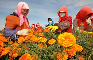 近日,寧夏銀川市金鳳區(qū)良田鎮(zhèn)種植的色素菊采收接近尾聲。近年來,該區(qū)大力推廣色素菊種植,色素菊花朵色澤艷麗,花期長(zhǎng),可提取有“軟黃金”之美譽(yù)的天然色素,廣泛應(yīng)用于食品、藥品著色,集觀賞性與經(jīng)濟(jì)效益于一體。目前,金鳳區(qū)共種植色素菊1500畝,每畝可為農(nóng)民創(chuàng)收700元左右。