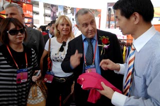10月21日,中國(guó)義烏浪莎企業(yè)的營(yíng)銷人員正在向意大利商人推薦新產(chǎn)品。 當(dāng)日,2008中國(guó)義烏國(guó)際小商品博覽會(huì)在浙江義烏開(kāi)幕。本屆義博會(huì)吸引了超過(guò)130個(gè)國(guó)家和地區(qū)的11萬(wàn)名客商。義烏小商品市場(chǎng)是全球最大的商品批發(fā)市場(chǎng)。2008年前三季度,海關(guān)共接受義烏小商品出口報(bào)關(guān)單21.25萬(wàn)份,集裝箱40.44萬(wàn)標(biāo)箱,同比分別增長(zhǎng)26.52%和28.38%。 |