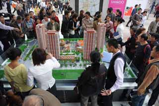 10月23日,重慶市民在秋季房交會上看盤選房。