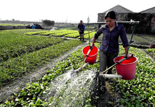 10月28日,臺州市路橋區(qū)橫街鎮(zhèn)湖頭村農(nóng)民正在為蔬菜澆水。 2007年3月,浙江省臺州市路橋區(qū)橫街鎮(zhèn)湖頭村通過成立天湖土地股份合作社,農(nóng)民自愿以土地入股,并對入股的土地進(jìn)行統(tǒng)一經(jīng)營管理,有效盤活了土地,提高了農(nóng)業(yè)效益,增加了社員的收益。 |