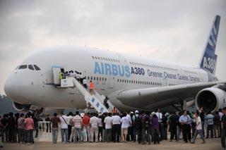 11月3日,世界最大客機(jī)——被稱為“空中巨無霸”的空客A380客機(jī)飛抵珠海機(jī)場。從11月4日開始,這架客機(jī)將在第7屆中國國際航空航天博覽會(huì)(珠海航展)上進(jìn)行靜態(tài)展示及飛行表演。這是空中客車A380客機(jī)首次參加珠海航展。