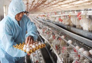 11月3日,定興縣田侯村村民李日東在揀雞蛋。 近日,受遼寧大連產(chǎn)“佳之選”雞蛋、山西長治生產(chǎn)的“慈云祥”牌土雞蛋被檢測出含有三聚氰胺事件的影響,河北省雞蛋價(jià)格經(jīng)歷了持續(xù)5天的低迷。記者在該省定興縣采訪了解到,自10月31日起雞蛋價(jià)格已開始回升。定興縣蛋雞存欄量200多萬只,蛋農(nóng)養(yǎng)雞信心堅(jiān)定。 |