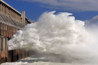江水通過三峽泄洪壩下泄(攝于11月7日)。