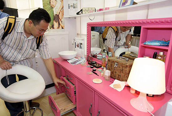 日前,“德中同行——走進(jìn)廣東”活動在廣州開幕。德國博世集團(tuán)攜全系列高端環(huán)保新品亮相,其中別具一格的“藝術(shù)回收”展品備受矚目。圖為觀眾在參觀利用老冰箱設(shè)計改造的“維多利亞梳妝臺”。