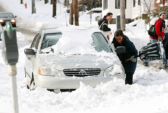 22日,在加拿大東部新斯科舍省的哈利法克斯,一名婦女鏟除汽車附近的積雪。哈利法克斯剛剛降下了今冬第一場暴風(fēng)雪,給當(dāng)?shù)鼐用竦纳钤斐蓸O大不便。新華社/路透