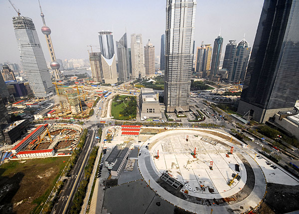 位于上海環(huán)球金融中心和金茂大廈旁的上海中心工地(圓形地基)準(zhǔn)備就緒,即將正式開工(11月27日攝)。