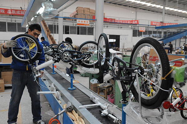素有“自行車之鄉(xiāng)”美譽(yù)的天津市武清區(qū),是我國北方最大的自行車生產(chǎn)制造基地,全區(qū)年產(chǎn)銷量1100多萬輛,在全國市場占有率達(dá)16%。在世界經(jīng)濟(jì)危機(jī)面前,他們以創(chuàng)新品種、樹立品牌、擴(kuò)大出口為突破口,給行業(yè)發(fā)展帶來了更大空間。
