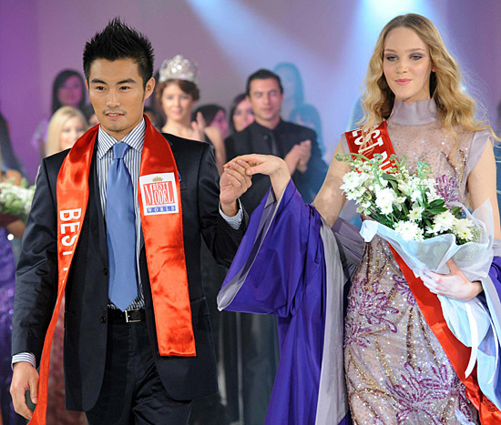 7日,在土耳其伊斯坦布爾舉行的第21屆世界最佳模特大賽總決賽上,中國天津籍選手南伏龍(左)奪得第四名并榮獲亞洲最佳模特獎(jiǎng)和最佳上鏡獎(jiǎng)。來自法國的庫蒂里耶和來自中非共和國的朱耶分獲男女冠軍。
