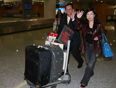 12月15日,抵達(dá)乘客向迎接人群揮手致意。