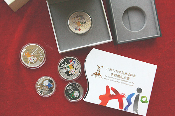 由中國印鈔造幣總公司發(fā)行、中鈔國鼎投資有限公司總經銷的廣州2010年亞洲運動會吉祥物紀念章23日面世。該套以“喜樂羊羊”為主題的廣州2010年亞洲運動會吉祥物紀念章采用.999純金和.999純銀鑄造,工藝精湛,喻義美好,是廣州亞運會首款貴金屬紀念章。