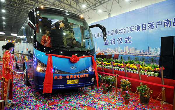 12月29日,來自上海瑞華(集團)有限公司的環(huán)保型電動客車在南昌舉行的簽約儀式上亮相。