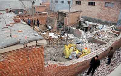 這是無極縣郭莊鎮(zhèn)郭莊村煙花作坊爆炸現(xiàn)場(chǎng)(1月4日攝)。