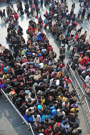 1月7日,廣州火車站廣場上乘客排隊(duì)進(jìn)站。