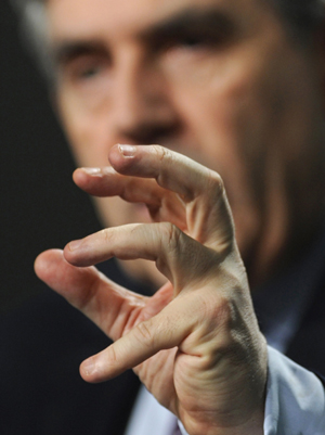 1月12日,在英國(guó)首都倫敦市中心,英國(guó)首相布朗在就業(yè)峰會(huì)上講話。英國(guó)政府當(dāng)日召開(kāi)會(huì)議,計(jì)劃出資5億英鎊(約合51億人民幣),實(shí)施一項(xiàng)刺激就業(yè)的新計(jì)劃,以減緩經(jīng)濟(jì)不景氣帶來(lái)的就業(yè)壓力。 |