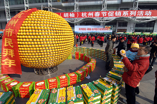 1月14日,浙江衢州柑橘(胡柚)杭州春節(jié)促銷活動在杭州舉行。面對嚴(yán)峻的銷售形勢,衢州市委、市政府專門出臺政策,采取開拓市場、開辟綠色通道、單位幫扶、信貸保障等多方面舉措,幫助橘農(nóng)解決“賣橘難”問題。