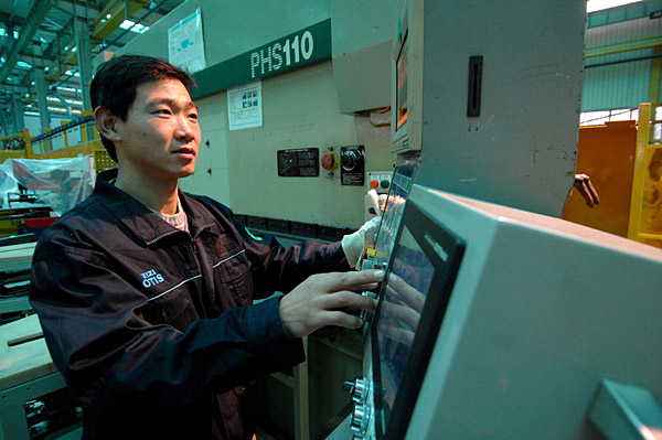日前,留守在杭州西子奧的斯電梯有限公司的安徽籍機床技工武杰峰在生產(chǎn)車間檢修和保養(yǎng)設備。
