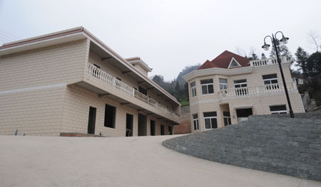 這是都江堰青城山鎮(zhèn)茶坪村已經(jīng)完工的聯(lián)建房。圖中右側為村民王正良所有,左側屬于投資方、自然人鄧先生。汶川大地震后,四川省都江堰摸索出“聯(lián)建”這一災后重建模式,即災區(qū)村民提供農(nóng)村宅基地、自然人出資建房,通過農(nóng)民宅基地的產(chǎn)權流轉(zhuǎn),解決村民建房資金問題。