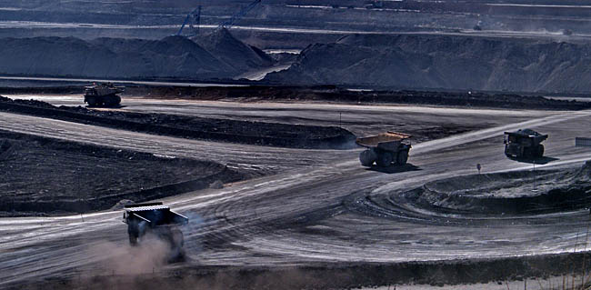 2月15日,神華集團準(zhǔn)能公司黑岱溝露天煤田正在運輸剝離的土層。