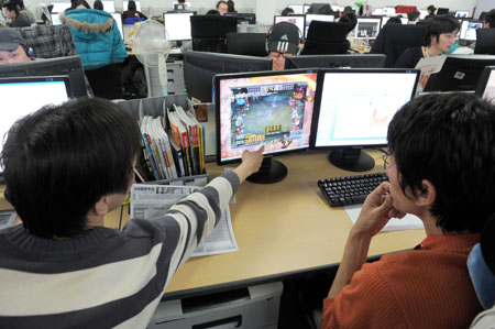 金融危機(jī)為文化產(chǎn)業(yè)開啟了一扇門。3月12日,處于中國網(wǎng)絡(luò)游戲開發(fā)運(yùn)營領(lǐng)先位置的福州網(wǎng)龍公司的研發(fā)人員在游戲測試中。新華社記者:姜克紅